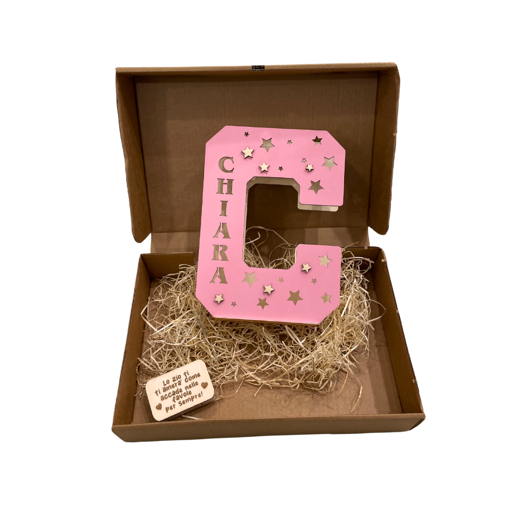 Lampada in legno a forma di lettera CON BASE, personalizzata con il nome.
